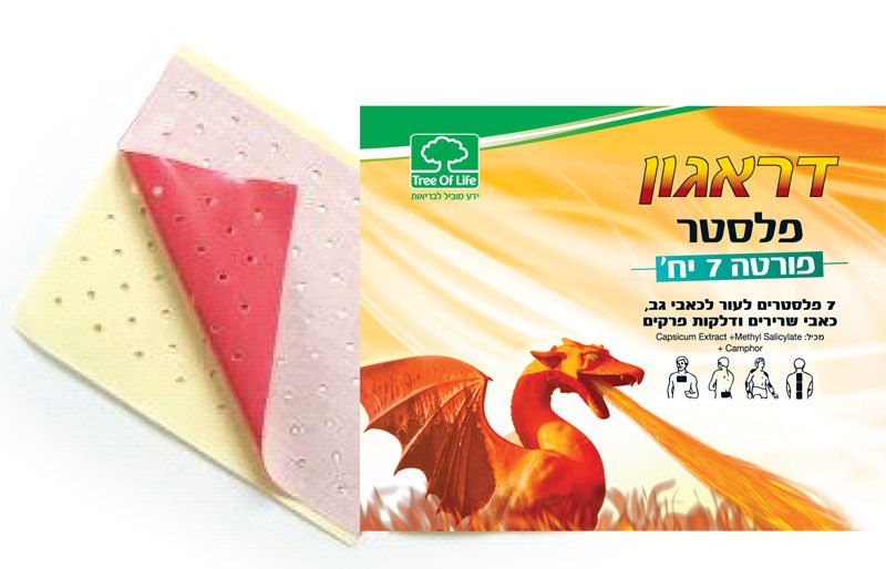 7 פלסטרים להקלה על כאבים חזקים בגב, בפרקים ובשרירים. דראגון פלסטר 7 פורטה הינו מארז פלסטרים מיוחד המכיל קפסיקום (capsicum) מנטול, מתיל סליצילאט וקמפור להקלה במקרים של כאבי גב, כאבי שרירים ודלקות פרקים. דראגון פלסטר פורטה קל ונוח ליישום בגב, בידיים וברגליים. ניתן להדבקה חזקה גם במרפקים ובשרירים. דראגון פלסטר שביעיה מכיל 7 פלסטרי דראגון.