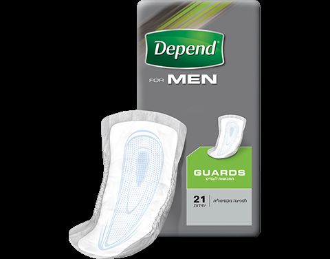 Depend Guards – תחבושות לגברים המיועדות לספיגה קלה. בעלות גזרה המותאמת למבנה הגוף הגברי. מספקות דיסקרטיות והגנה מלאה.